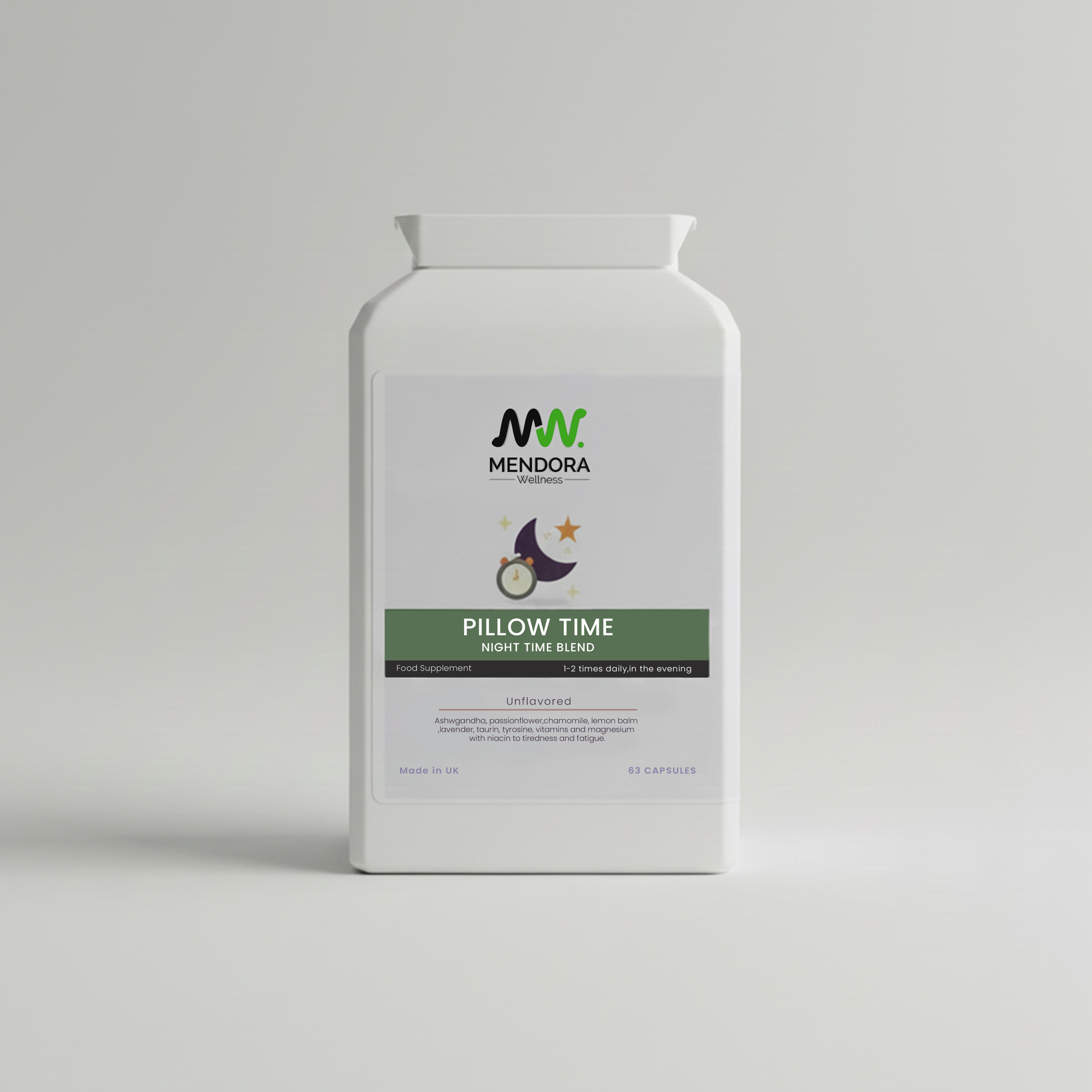 Drift into a restful night with Pillow Time, a unique blend of herbal extracts, amino acids, vitamins, and minerals designed to support relaxation and promote better sleep. Featuring ashwagandha, passion flower, chamomile, and lavender, this formula helps ease stress, calm your mind, and improve sleep quality so you wake up refreshed and energized.