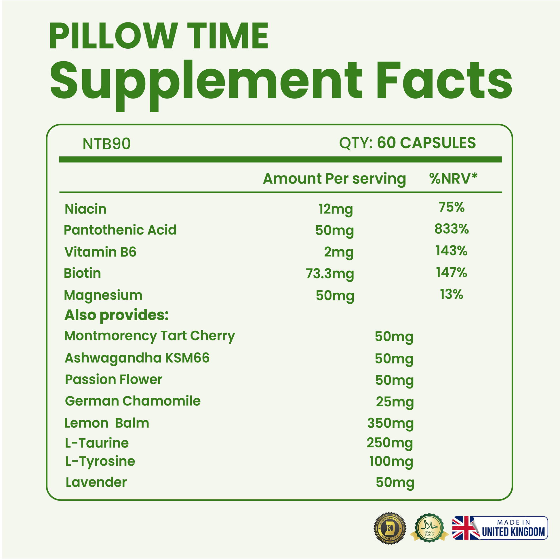 - Feel the difference with Pillow Time – your natural solution to a peaceful night’s sleep.